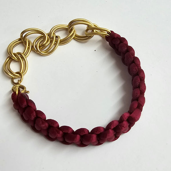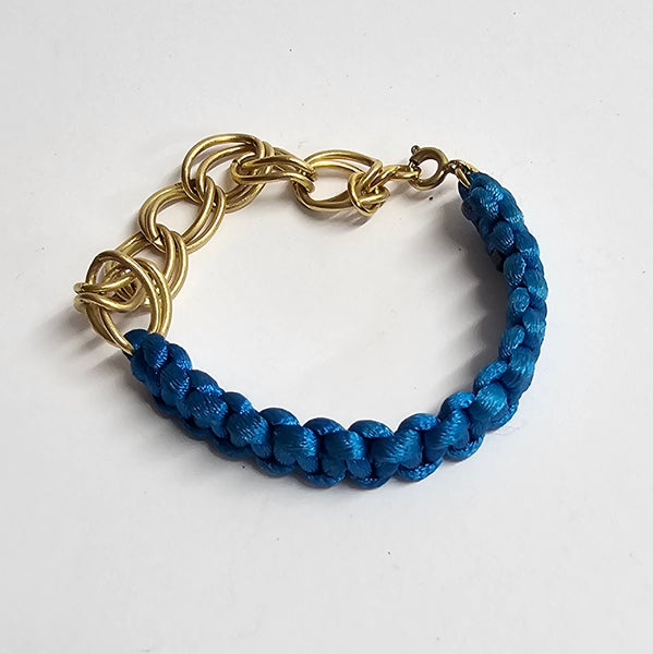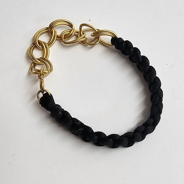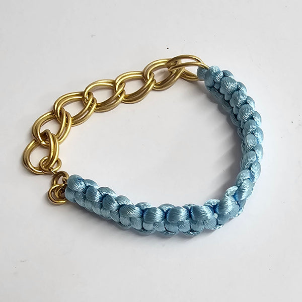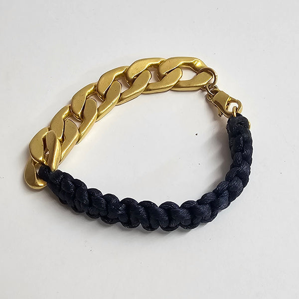 מתאים לנערות בעיצוב צעיר ושובב .צמיד חוטים צבעוני שזור בצמיד שרשרת בציפוי גולדפילד.