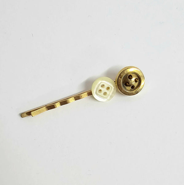 סיכת ראש מוזהבת מיוחדת עם כפתורים בצבעי לבן זהב .
