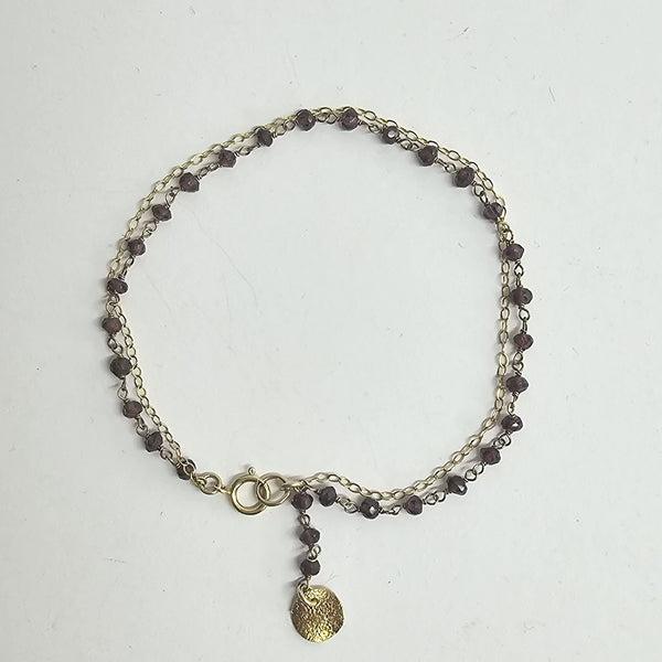 צמיד גולדפילד עדין ויפה משולב במחרוזת חרוזים בגוון בורדו למראה קלאסי.