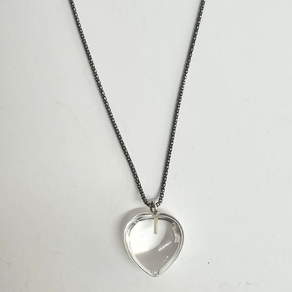 שרשרת בגוון כהה (אמתיס) בעלת תליון לב שקוף ועדין בגודל כ-1 ס"מ