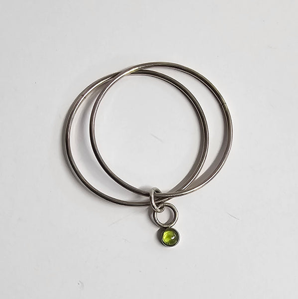 זוג צמידי כסף בצורת חישוק חלק וקלאסי מחוברים עם תליון טבעות עגול ירוק למראה יפה ועדין