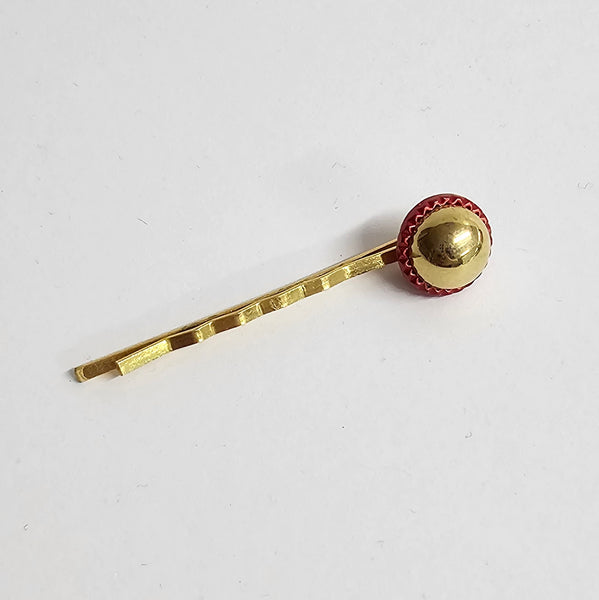 סיכת ראש מוזהבת עם כפתור זהב בעיטור אדום